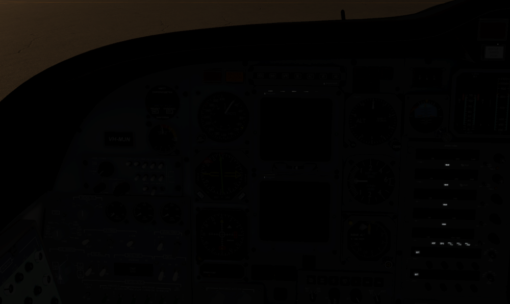 Very happy with v1.1 especially that you folks got it out the door on the same day XP12.4 went live! I was not expecting that. Having lots of fun with the weather radar. Got a couple of bugs/questions beyond the scope of community fixes... ## Label lighting The white label text or label backgrounds go black at night and remain unlit, e.g. registration placard chronometer labelling SET INDEX, STD, BARO, PULL TO CAGE etc on main panel knobs - but not TEST or the markings on the EFIS panel knobs... what's different there? RADAR ALT failure flag - is white in daylight, black at night INOP sticker on the wings indirect light switch cabin door exterior, perhaps most noticeably the START DISG button has the opposite problem where it transforms into a lit white square at night when the panel lighting is on OEM radio panel buttons are backlit with battery off (click to enlarge) There are probably more - if you shine the torch on the cockpit at nighttime the affected areas kinda glow black in a way that'd be interesting to physicists ## Engine Start buttons When I start the first engine, the start button lights up (becomes a lit white square), and extinguishes at about 40% N2 or thereabouts. When I start the second engine, both start buttons light up. This occurs with panel lights on or off, starting either engine first, in day or night. This might be correct behaviour or it might be a bug and only the operating starter button should be lit? ## Garbled PA briefing The PA briefing messages sometimes play at high speed and pitch - I've had it happen twice with the DESC message after WELC, SAFE and T/O play successfully. (Often I skip CRZ because we're still climbing when I reach TOD...) ## Engine total hours animation wrong I think this was already raised somewhere but the animation for the roller counters is wrong, and the counters move while the engines are shut down ## Engine covers It's possible to reach through the wall of the aircraft and put the engine covers on (or try to) midflight, for instance while misclicking on the reading light switch for the rear seats The engines still windmill when the covers are on On a tangent... it's also possible to reach through the cockpit floor to place/remove the nosewheel chock: ## Door latches I hesitate to raise this one because I really like the work that's gone into the cabin door and its lock, but a bit of additional logic would be icing on a very nice cake here! you can click to lock the door while it's closing and before it shuts, and this successfully locks the door if you click quickly on the door handle, the handle jerks towards Open or Lock then back to Stow, but the pins and indicator flags keep moving under their own steam and the door successfully locks or unlocks not checked in v1.1 but in v1.0.3 you could unlock and open the door with the plane pressurised which is usually physically impossible? Cake icing: the pins and telltale flags should be pushed by the door handle, i.e. only move as far as the door handle can be seen to move, so you need to click and hold to move the handle the full distance to lock/unlock the door trying to lock the door before it's shut should result in the pins striking the door jamb and/or the aircraft exterior, preventing the door from closing and the Door Closed indicator from aligning It's quite fun for the player to have the chance of mishandling the door, ignoring the annunciator and then wondering why they can't pressurise... so please don't simply deactivate the door handle manipulators until the door is shut ## W&B UI This is a feature request more than a bug: Dragging the sliders to set the weight in each seat gets tedious. Could you provide a tickbox for each seat - unticked is 0lb, ticked is whatever the slider was set to - or provide buttons to set the slider to 0lb and 170lb? Can you provide a text input box or additional slider to set the total fuel amount? I don't know why/if I'd need to specify different amounts for each tank - usually I just want say 1600lb and I need to drag each slider to as close to 800lb as I can manage Is there a correct way to specify we're using the toilet as a passenger/crew seat... or do I just split their weight between the two rearmost seats ## UNS-1 Is there any way the UNS-1, when it's popped out in a separate window and has keyboard focus, can detect I've made a mouseclick somewhere other than on its popout and yield its keyboard focus? This would be really helpful as I keep not realising it's still got keyboard focus. ## Annunciators The AP/FMS annunciators are hard to read in daylight because they're quite dim. The panel lighting NIGHT DIM switch makes a small difference but just to the AP OFF/YD OFF annunciator as far as I can tell While at night, they are hard to read because they bleed together: (These are cropped screenshots of how they appear at normal viewing distances... 80° FOV at 2560x1440) Same applies to the DME annuciators - I can't find a way to test the AP OUT OF TRIM annunciator! Thanks to everyone for this fantastic plane!
