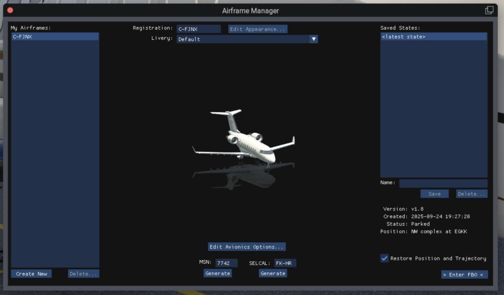 Greetings, I'm having a bit of a problem with my CL650. It's got a bit messed up so I'm trying to reset it to factory default cold and dark. I deleted all of the saved States and the only one that remains is the default but when I load it all of the outside components are already removed. How do I get it to a complete factory clean start please with pins, sensor covers and chocks in place?