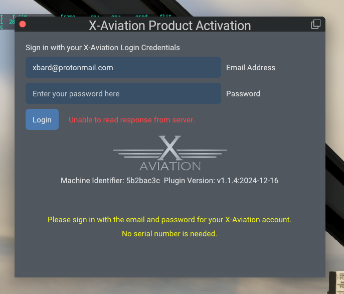 Kalnon Posted April 3 Report Posted April 3 Hello, I started up X-Plane 12 to do a flight in an aircraft, and when my flight and aircraft loaded, I was presented with two different X-Aviation prompts that ask me to enter my X-Aviation account email and password but no matter how many times I try to enter in the information, it does not work. On one of them nothing happens and when I try the other one, I get an error message. I do own a few X-Aviation aircraft which is why I'm guessing I'm getting these but I never had an issue before where it wouldn't work when I enter in my information. I double and triple checked that I was entering in the correct information, so I don't believe that is the problem. I would really appreciate any help, I don't think I'll be able to fly my X-Aviation aircraft without getting past this. Thank you Quote